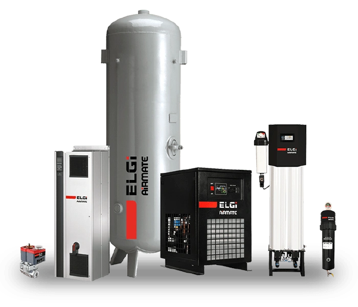 ELGi supplies a broad array of pneumatic downstream accessories to guarantee that compressed air conforms with application-specific air-quality benchmarks set by ISO 8573. ELGi’s range of downstream air purification & condensate control solutions is branded AIRMATE, while its energy-saving devices are known as ELGi Conserve.